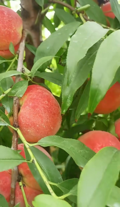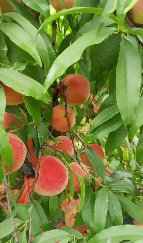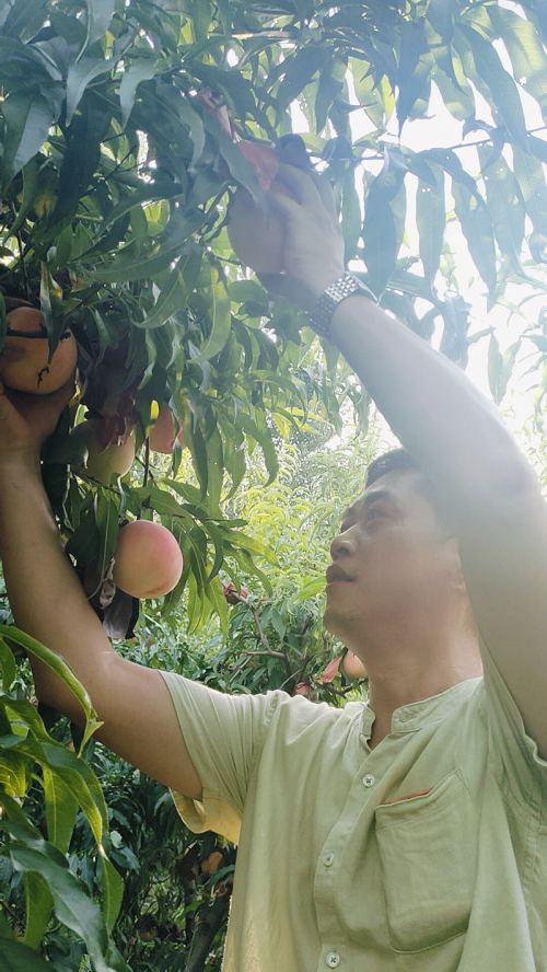 果农们为了培育出高品质的水蜜桃,付出了辛勤的努力。每棵桃树的每根枝条上,都挂着硕大的果实,它们充分吸收养分,茁壮成长。果园坚持绿色有机栽培,以农家肥滋养果树,为水蜜桃套上“保护衣”,不仅让水蜜桃色泽鲜艳夺目,还能有效防鸟防虫。果树下,土鸡悠然自得地踱步觅食,构成了一幅和谐的生态画卷。