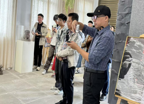 踏入“百年根”基地,一件雷州乌木打造的根雕茶台凭借天然肌理与人工雕琢的精妙融合,瞬间吸引记者团目光。在企业创始人陈国玉的引导下,媒体团沿宣传栏、展示厅、非遗工坊依次参观,详细了解根雕、石狗、雷州窑三大非遗品类的创作理念、灵感来源及产品开发历程。